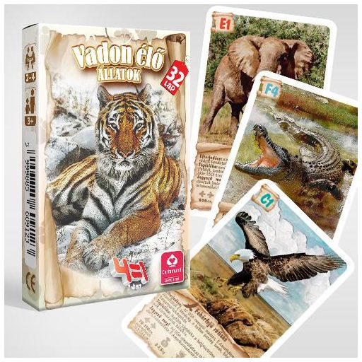 Ismerd meg a földön élő vadállatokat. Tudj meg róluk minél többet a lapokon szereplő információk segítségével. Játszható memória, kvartett, Fekete Péter és Adu játék (válassz ki egy tetszőleges tulajdonságot, a legnagyobb szám nyer. pl. életkor) és szabályai szerint. 32 lapos